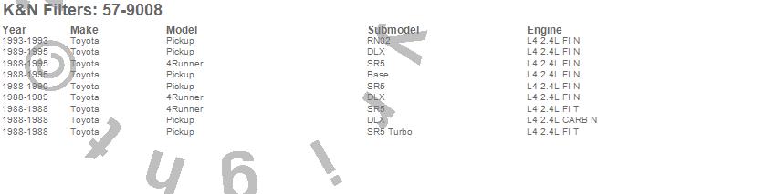 Below is an abbreviated list of applications for the Filtercharger Injection Performance Kit.