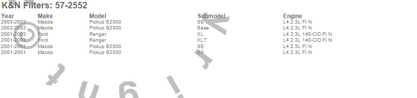 Below is an abbreviated list of applications for the Filtercharger Injection Performance Kit.