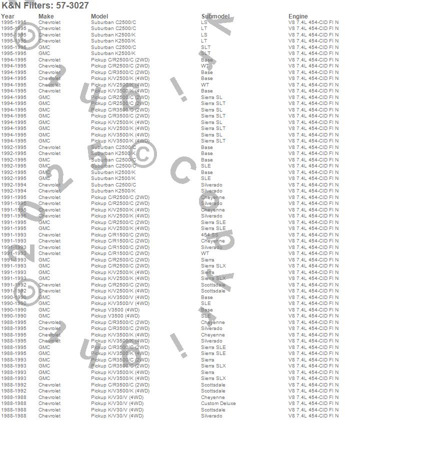 Below is an abbreviated list of applications for the Filtercharger Injection Performance Kit.