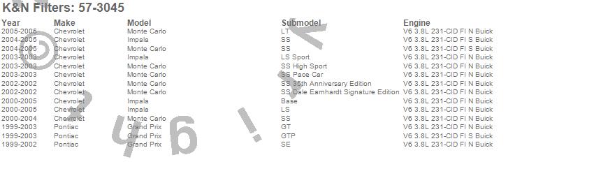 Grand Prix, Impala, Monte Carlo, Chevrolet, Pontiac, 2005, 2004, 2003, 2002, 2001, 2000, 1999