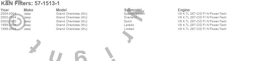 Grand Cherokee (WJ), Jeep, 2004, 2003, 2002, 2001, 2000, 1999