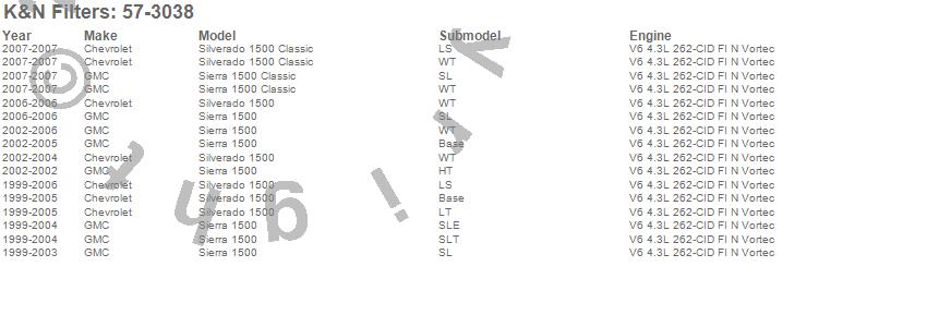 Below is an abbreviated list of applications for the Filtercharger Injection Performance Kit.