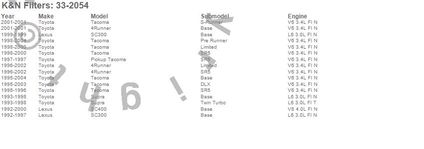 4Runner, SC300, SC400, Supra, Tacoma, Lexus, Toyota, 2004, 2003, 2002, 2001, 2000, 1999, 1998, 1997, 1996, 1995, 1994, 1993, 1992
