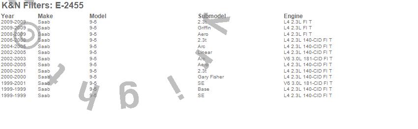 Below is an abbreviated list of applications for the Air Filter.