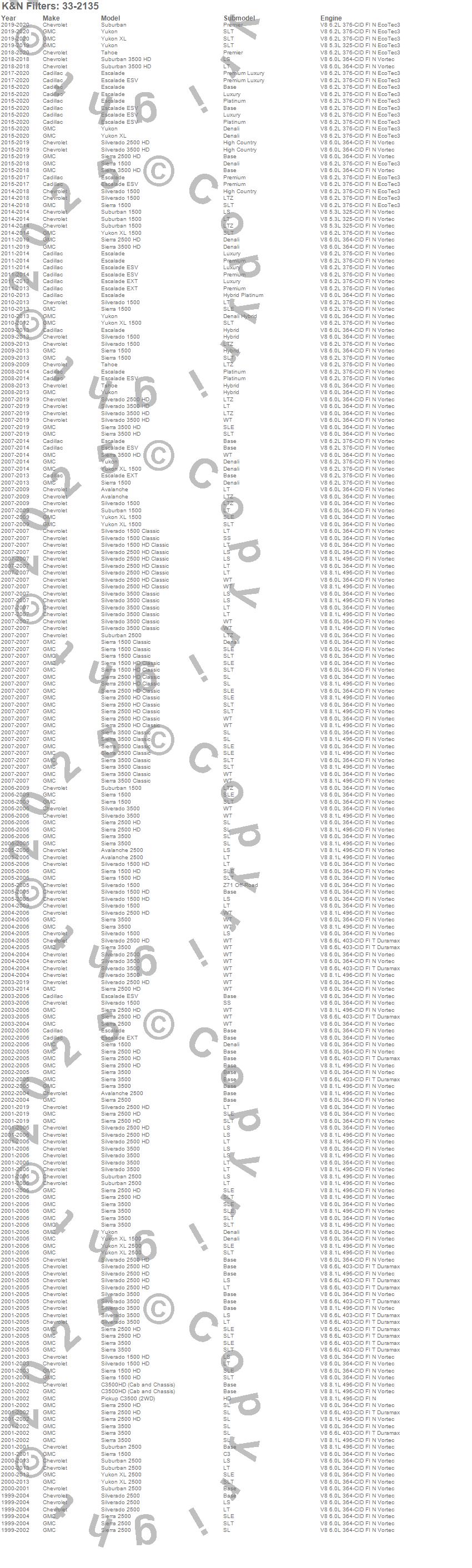 Avalanche, Avalanche 2500, C3500 Pickup, C3500HD, Escalade, Escalade ESV, Escalade EXT, Sierra 1500, Sierra 1500 Classic, Sierra 1500 HD, Sierra 1500 HD Classic, Sierra 2500, Sierra 2500 HD, Sierra 2500 HD Classic, Sierra 3500, Sierra 3500 Classic, Sierra 3500 HD, Silverado 1500, Silverado 1500 Classic, Silverado 1500 HD
