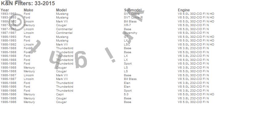 K&N Filters - Air Filter P/N 33-2015 Features: