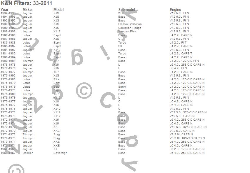 Below is an abbreviated list of applications for the Air Filter.