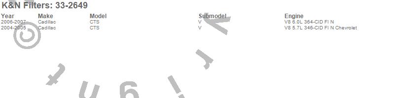 Below is an abbreviated list of applications for the Air Filter.
