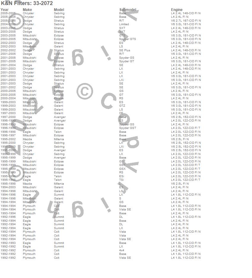 Avenger, Colt, Eclipse, Galant, Millenia, Sebring, Stratus, Summit, Talon, Chrysler, Dodge, Eagle, Mazda, Mitsubishi, Plymouth, 2005, 2004, 2003, 2002, 2001