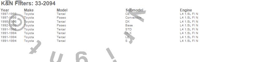 Paseo, Tercel, Toyota, 1999, 1998, 1997, 1996, 1995, 1994, 1993, 1992, 1991