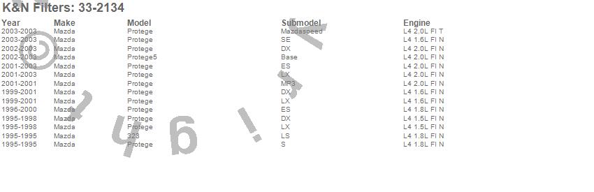 Below is an abbreviated list of applications for the Air Filter.