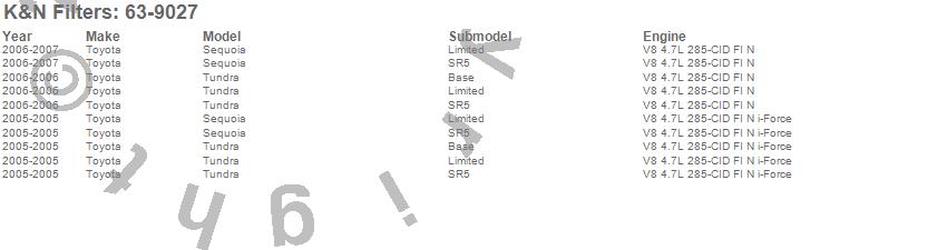 Below is an abbreviated list of applications for the 63 Series Aircharger Kit.