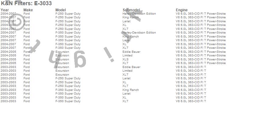 Below is an abbreviated list of applications for the Air Filter.