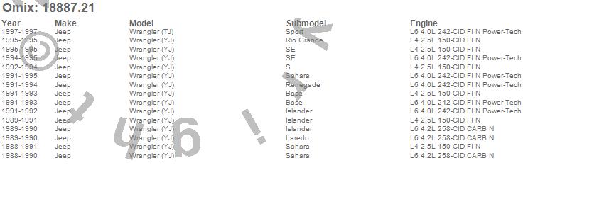 Wrangler (TJ), Wrangler (YJ), Jeep, 1997, 1995, 1994, 1993, 1992, 1991, 1990, 1989, 1988