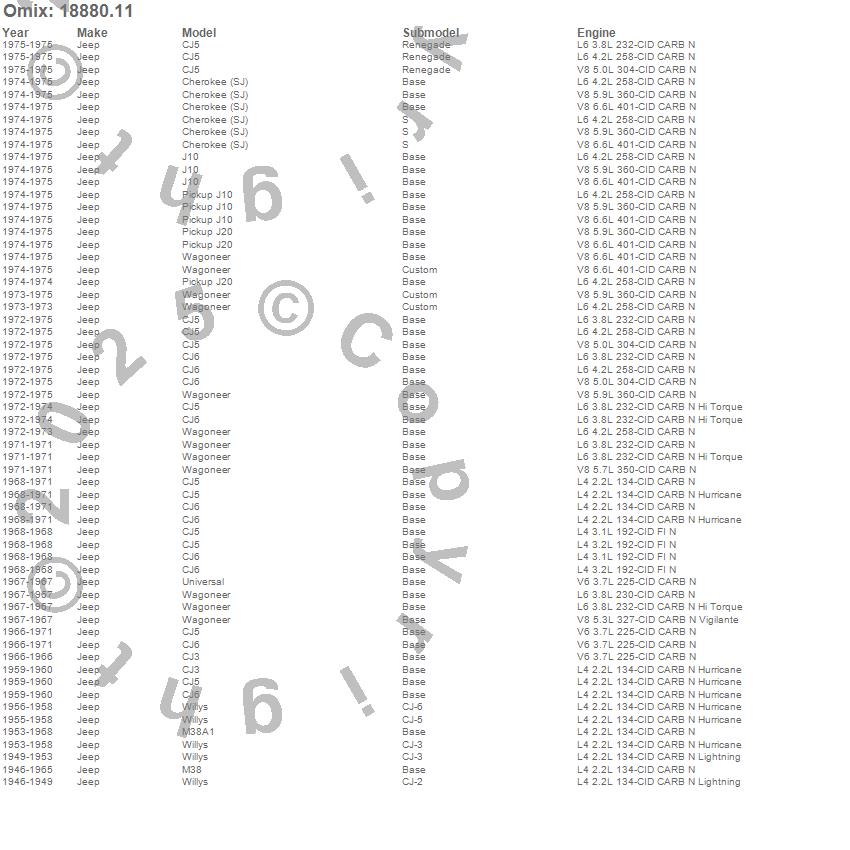 Cherokee (SJ), CJ3, CJ5, CJ6, J10, J20, M38, M38A1, Universal, Wagoneer, Willys, Jeep, 1975, 1974, 1973, 1972, 1971, 1970, 1969, 1968
