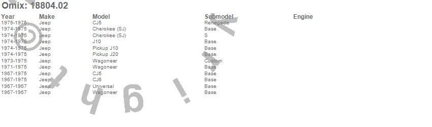 Cherokee (SJ), CJ5, CJ6, J10, J20, Universal, Wagoneer, Jeep, 1975, 1974, 1973, 1972, 1971, 1970, 1969, 1968, 1967