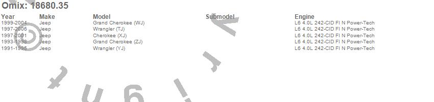 Cherokee (XJ), Grand Cherokee (WJ), Grand Cherokee (ZJ), Wrangler (LJ), Wrangler (TJ), Wrangler (YJ), Jeep, 2006, 2005, 2004, 2003, 2002, 2001, 2000, 1999, 1998, 1997, 1996, 1995, 1994