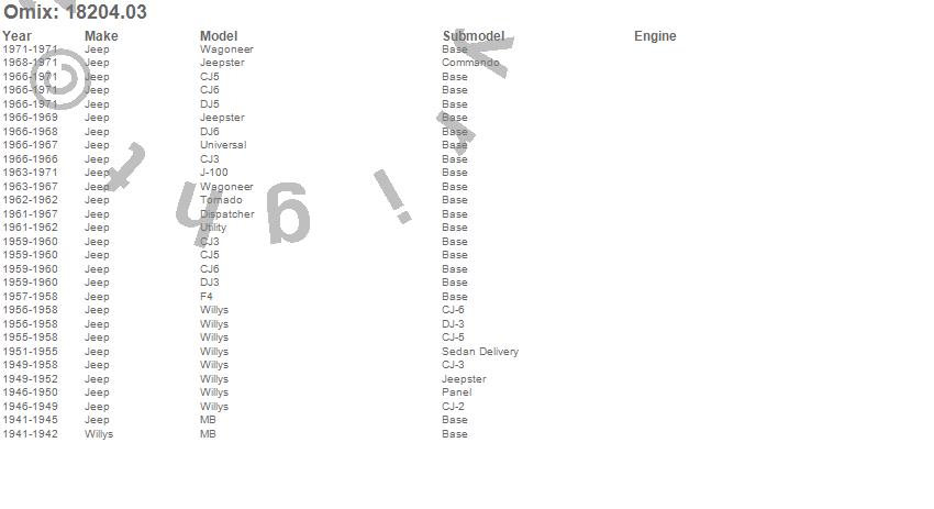 CJ3, CJ5, CJ6, Dispatcher, DJ3, DJ5, DJ6, F4, J-100, Jeepster, MB, Tornado, Universal, Utility, Wagoneer, Willys, Jeep, Willys, 1971, 1970