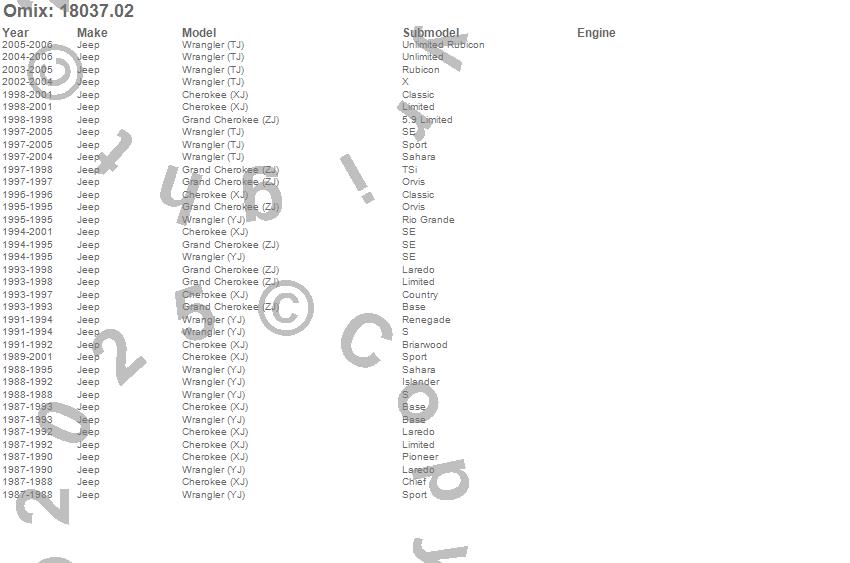 Cherokee (XJ), Grand Cherokee (ZJ), Wrangler (LJ), Wrangler (TJ), Wrangler (YJ), Jeep, 2006, 2005, 2004, 2003, 2002, 2001, 2000, 1999, 1998, 1997, 1996, 1995, 1994, 1993
