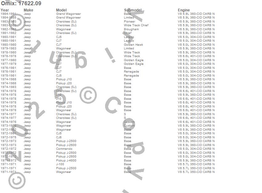 Cherokee (SJ), CJ5, CJ6, CJ7, Commando, Grand Wagoneer, J-100, J-2500, J-2600, J-4800, J10, J20, Wagoneer, Jeep, 1991, 1990, 1989, 1988, 1987, 1986