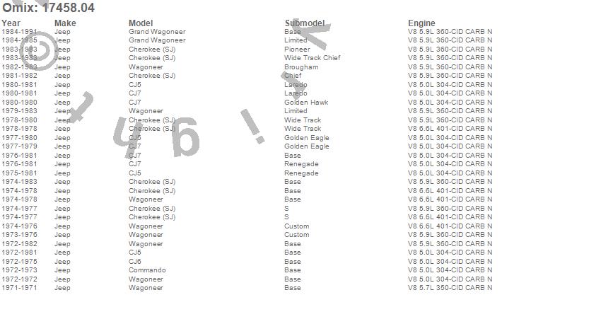 Cherokee (SJ), CJ5, CJ6, CJ7, Commando, Grand Wagoneer, J-100, J-2500, J-2600, J-2700, J-3500, J-3600, J-3700, J-3800, J-4800, J10, J20, Wagoneer, Jeep, 1991
