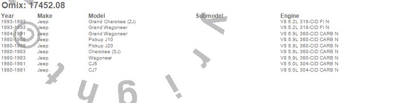 Cherokee (SJ), CJ5, CJ7, Grand Cherokee (ZJ), Grand Wagoneer, J10, J20, Wagoneer, Jeep, 1993, 1991, 1990, 1989, 1988, 1987, 1986, 1985, 1984, 1983, 1982