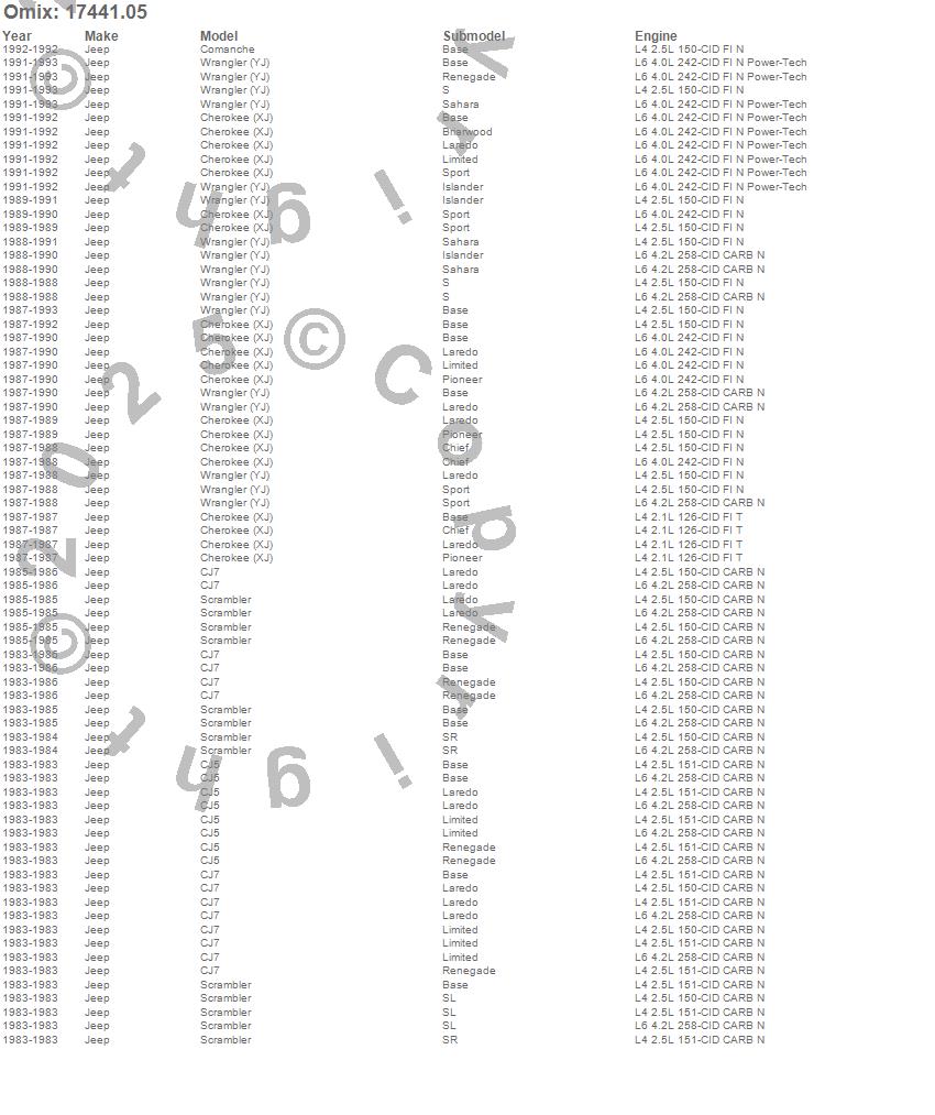 Cherokee (XJ), CJ5, CJ7, Comanche, Scrambler, Wrangler (YJ), Jeep, 1993, 1992, 1991, 1990, 1989, 1988, 1987, 1986, 1985, 1984, 1983