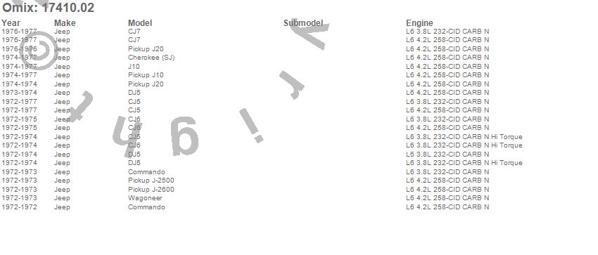 Cherokee (SJ), CJ5, CJ6, CJ7, Commando, DJ5, J-2500, J-2600, J10, J20, Wagoneer, Jeep, 1977, 1976, 1975, 1974, 1973, 1972