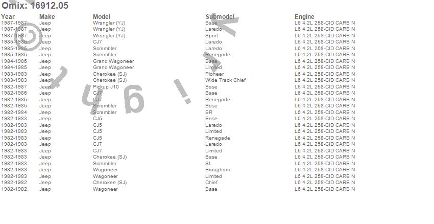 Cherokee (SJ), CJ5, CJ7, Grand Wagoneer, J10, Scrambler, Wagoneer, Wrangler (YJ), Jeep, 1987, 1986, 1985, 1984, 1983, 1982