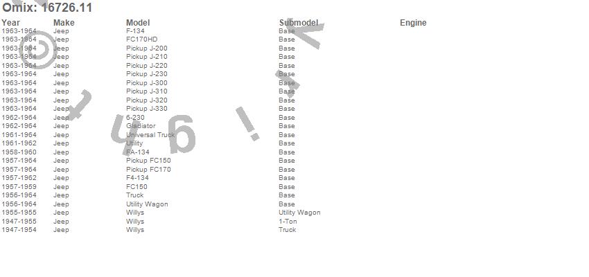 6-230, F-134, F4-134, FA-134, FC150, FC170, FC170HD, Gladiator, J-200, J-210, J-220, J-230, J-300, J-310, J-320, J-330, Truck, Universal Truck, Utility, Utility Wagon