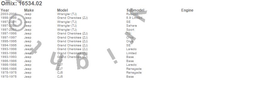 CJ5, CJ7, Grand Cherokee (ZJ), Wrangler (TJ), Jeep, 2006, 2005, 2004, 2003, 2001, 2000, 1999, 1998, 1997, 1996, 1995, 1994, 1993, 1986, 1975