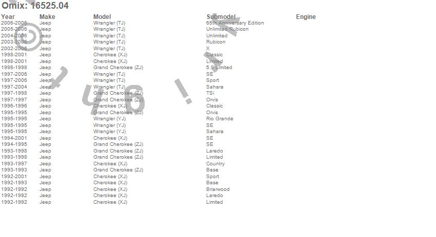 Cherokee (XJ), Grand Cherokee (ZJ), Wrangler (LJ), Wrangler (TJ), Wrangler (YJ), Jeep, 2006, 2005, 2004, 2003, 2002, 2001, 2000, 1999, 1998, 1997, 1996, 1995, 1994, 1993