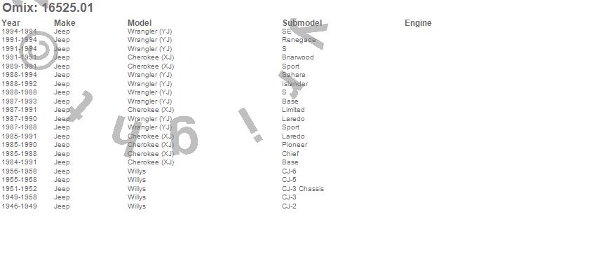 Cherokee (XJ), Willys, Wrangler (YJ), Jeep, 1994, 1993, 1992, 1991, 1990, 1989, 1988, 1987, 1986, 1985, 1984, 1958, 1957, 1956, 1955, 1954
