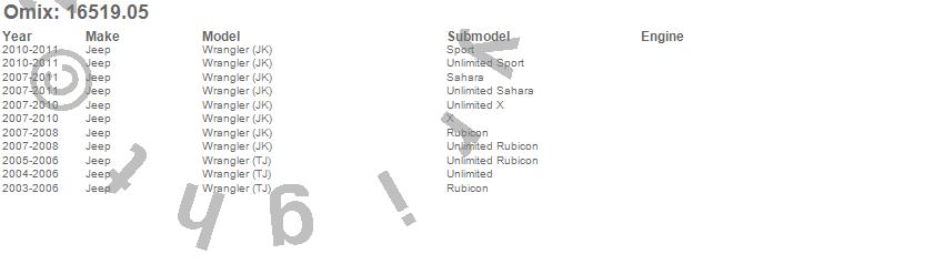 Wrangler (JK), Wrangler (LJ), Wrangler (TJ), Jeep, 2011, 2010, 2009, 2008, 2007, 2006, 2005, 2004, 2003