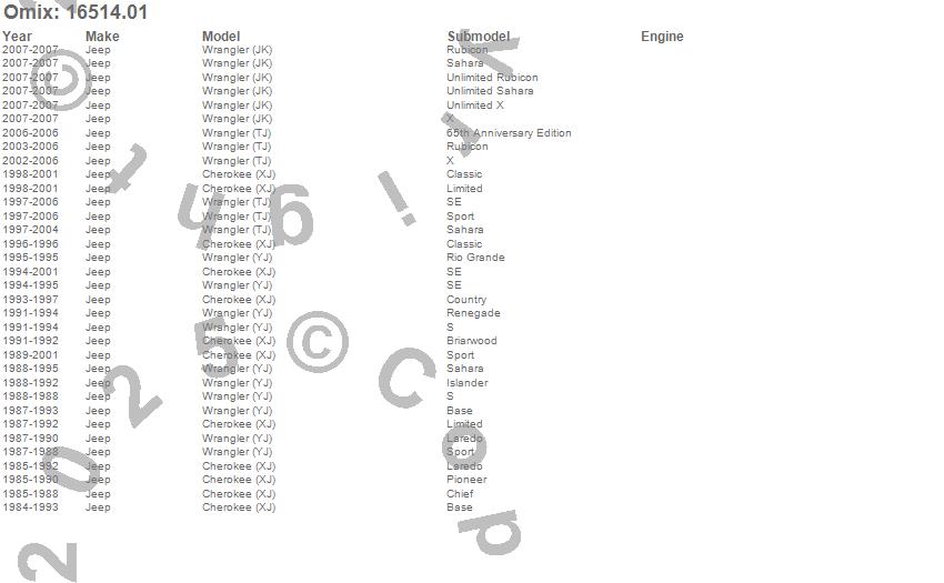 Cherokee (XJ), Wrangler (JK), Wrangler (TJ), Wrangler (YJ), Jeep, 2007, 2006, 2005, 2004, 2003, 2002, 2001, 2000, 1999, 1998, 1997, 1996, 1995, 1994, 1993