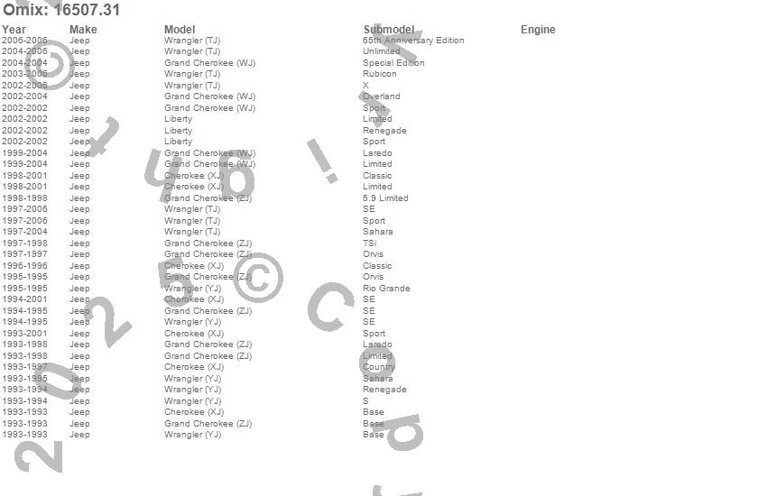 Cherokee (XJ), Grand Cherokee (WJ), Grand Cherokee (ZJ), Liberty, Wrangler (LJ), Wrangler (TJ), Wrangler (YJ), Jeep, 2006, 2005, 2004, 2003, 2002, 2001, 2000, 1999, 1998, 1997, 1996, 1995