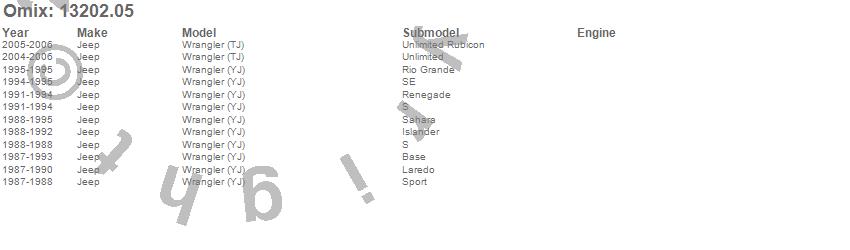 Wrangler (LJ), Wrangler (YJ), Jeep, 2006, 2005, 2004, 1995, 1994, 1993, 1992, 1991, 1990, 1989, 1988, 1987