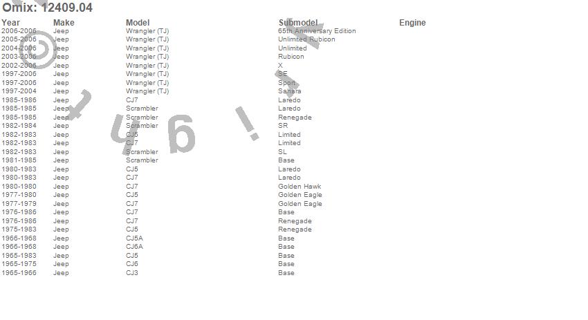 CJ3, CJ5, CJ5A, CJ6, CJ6A, CJ7, Scrambler, Wrangler (LJ), Wrangler (TJ), Jeep, 2006, 2005, 2004, 2003, 2002, 2001, 2000, 1999, 1998, 1997