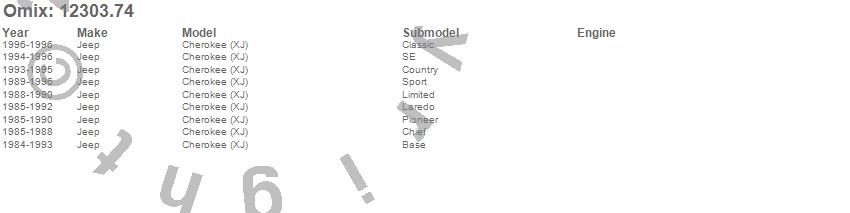 Cherokee (XJ), Jeep, 1996, 1995, 1994, 1993, 1992, 1991, 1990, 1989, 1988, 1987, 1986, 1985, 1984