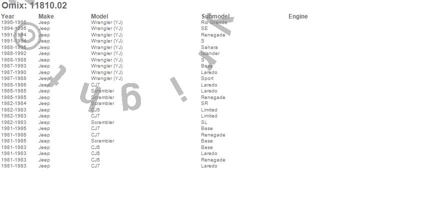 CJ5, CJ7, Scrambler, Wrangler (YJ), Jeep, 1995, 1994, 1993, 1992, 1991, 1990, 1989, 1988, 1987, 1986, 1985, 1984, 1983, 1982, 1981