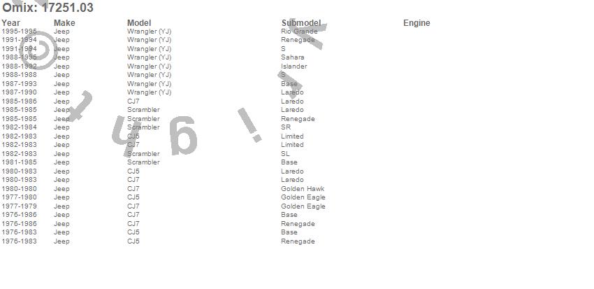 CJ5, CJ7, Scrambler, Wrangler (YJ), Jeep, 1995, 1994, 1993, 1992, 1991, 1990, 1989, 1988, 1987, 1986, 1985, 1984, 1983, 1982, 1981