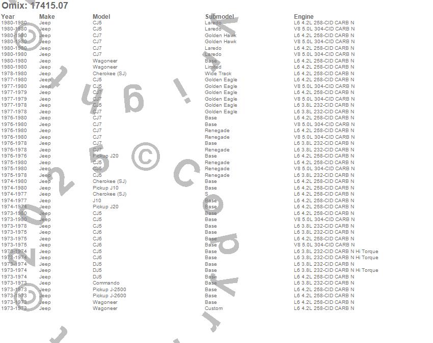 Cherokee (SJ), CJ5, CJ6, CJ7, Commando, DJ5, J-2500, J-2600, J10, J20, Wagoneer, Jeep, 1980, 1979, 1978, 1977, 1976, 1975, 1974, 1973