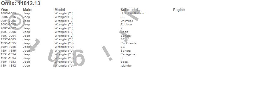 Wrangler (LJ), Wrangler (TJ), Wrangler (YJ), Jeep, 2006, 2005, 2004, 2003, 2002, 2001, 2000, 1999, 1998, 1997, 1995, 1994, 1993, 1992, 1991