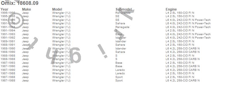 Wrangler (YJ), Jeep, 1995, 1994, 1993, 1992, 1991, 1990, 1989, 1988, 1987