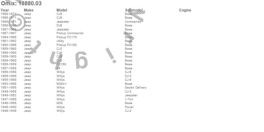 CJ3, CJ5, CJ6, Commando, DJ3, DJ6, F4, FC150, FC170, Jeepster, M38, M38A1, Utility, Willys, Jeep, 1971, 1970, 1969, 1968, 1967