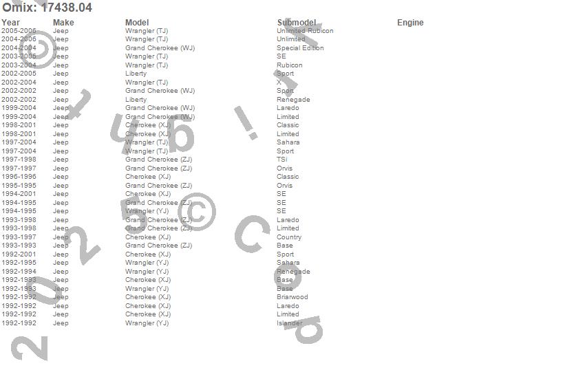 Cherokee (XJ), Grand Cherokee (WJ), Grand Cherokee (ZJ), Liberty, Wrangler (LJ), Wrangler (TJ), Wrangler (YJ), Jeep, 2006, 2005, 2004, 2003, 2002, 2001, 2000, 1999, 1998, 1997, 1996, 1995