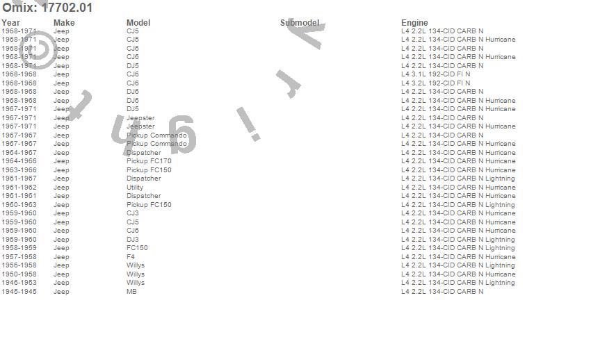 CJ3, CJ5, CJ6, Commando, Dispatcher, DJ3, DJ5, DJ6, F4, FC150, FC170, Jeepster, MB, Utility, Willys, Jeep, 1971, 1970, 1969, 1968