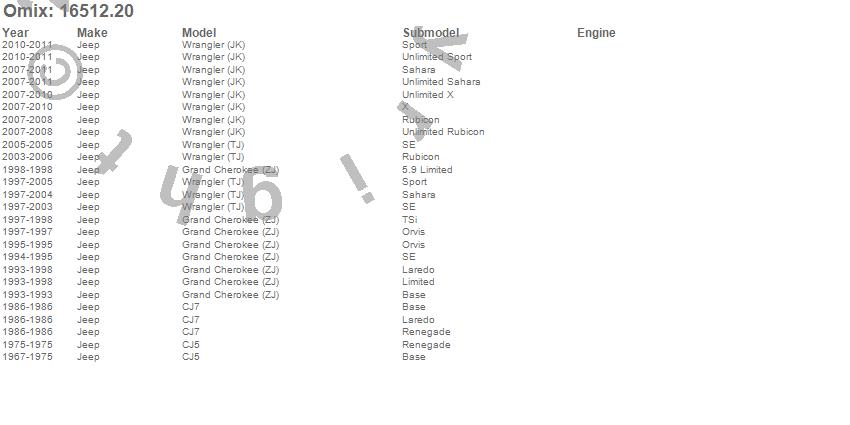 CJ5, CJ7, Grand Cherokee (ZJ), Wrangler (JK), Wrangler (TJ), Jeep, 2011, 2010, 2009, 2008, 2007, 2006, 2005, 2004, 2003, 2002, 2001, 2000, 1999, 1998