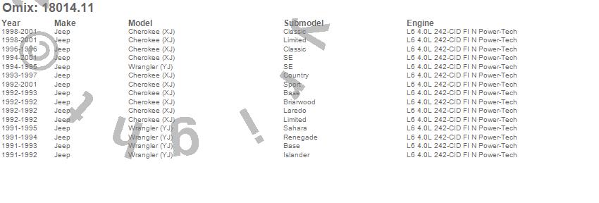 Cherokee (XJ), Wrangler (YJ), Jeep, 2001, 2000, 1999, 1998, 1997, 1996, 1995, 1994, 1993, 1992, 1991