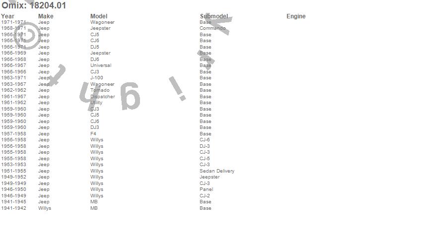 CJ3, CJ5, CJ6, Dispatcher, DJ3, DJ5, DJ6, F4, J-100, Jeepster, MB, Tornado, Universal, Utility, Wagoneer, Willys, Jeep, Willys, 1971, 1970